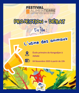 Projection débat du film "Usine des animaux" pour montrer aux élèves comment traité les animaux et les viandes importées que nous prisons en Afrique.